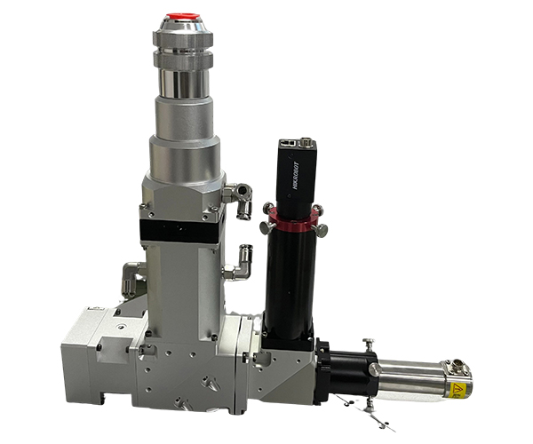 此款焊接頭為精密光纖(λ=915nm)焊接頭,準直和聚焦鏡片為多片式組合,外加特殊鏡片,使聚焦光斑變?yōu)殚L條形,可滿足焊接窄長條位置,比如MiniLED。優(yōu)化的機械設(shè)計和精密的調(diào)整機構(gòu),完全的密封性能,恒定的溫度控制,配合水冷和同軸吹氣,激光焊接頭可以在較高功率下持續(xù)穩(wěn)定的工作,此款產(chǎn)品兼容同軸成像。