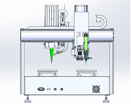 正面雙工位單點(diǎn)膠或雙點(diǎn)膠,背面激光雙工位焊接系統(tǒng) |